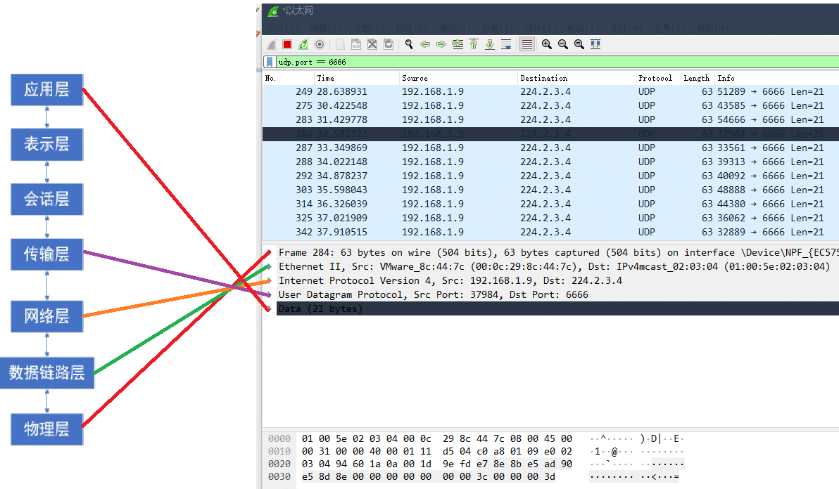 - 0X0800 只接收发往本机的mac的ip类型的数据帧