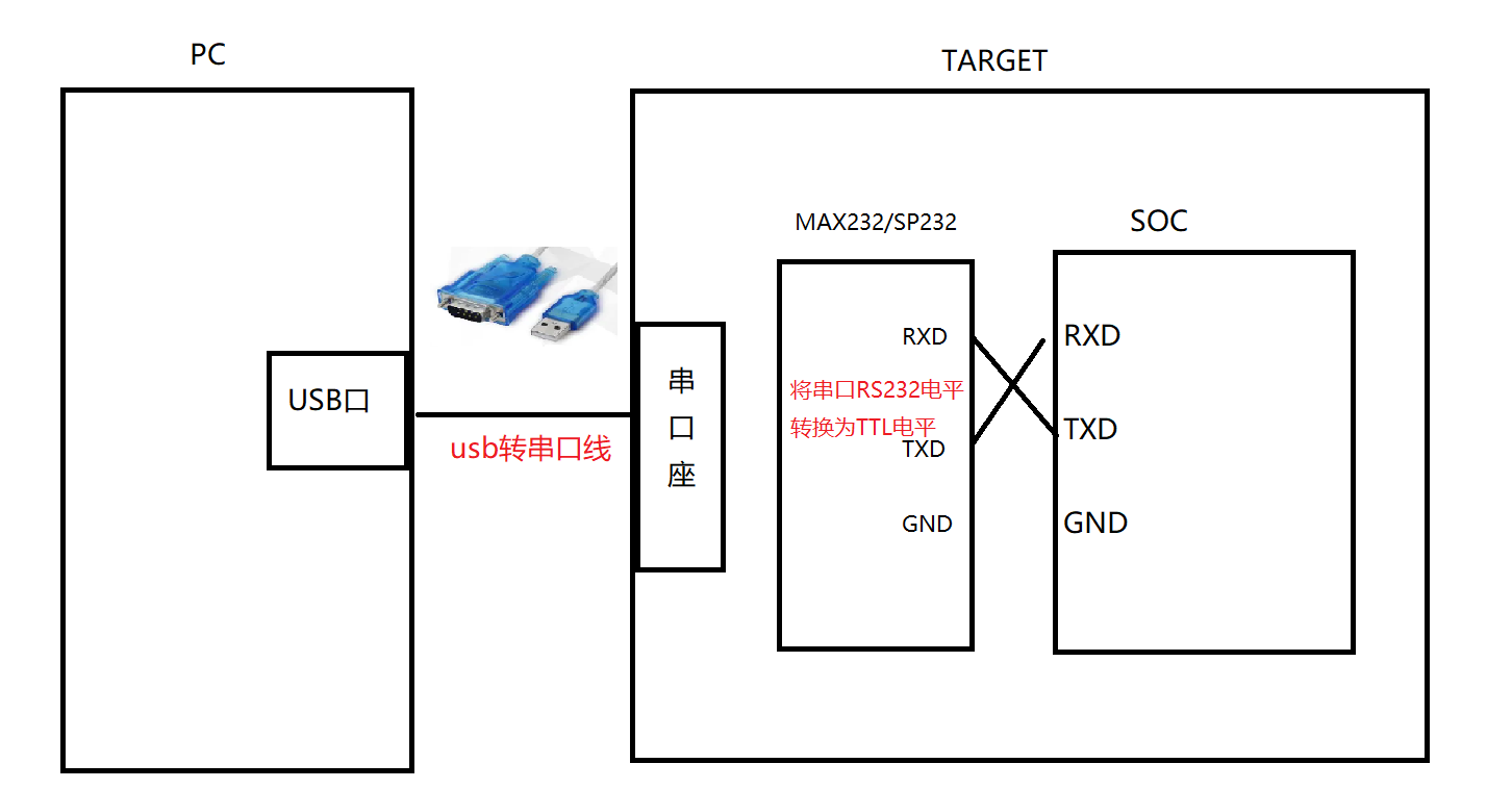 - 上图中,最右边的 1,2,3 对应的是 TXD,RXD 和 GND