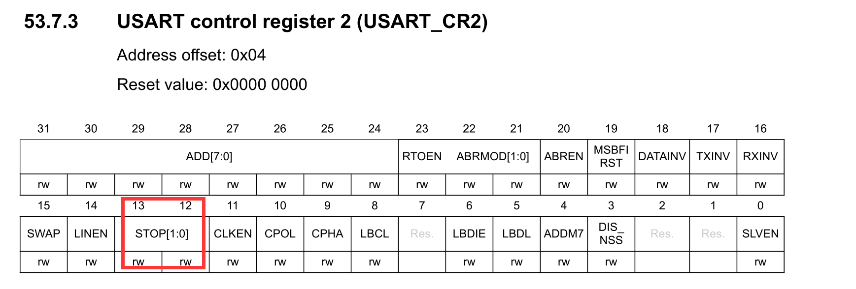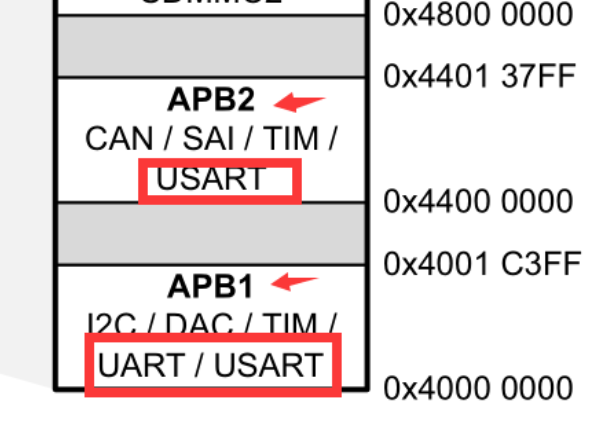 APB1总线的部分,可以知道UART的基地址为0x40010000