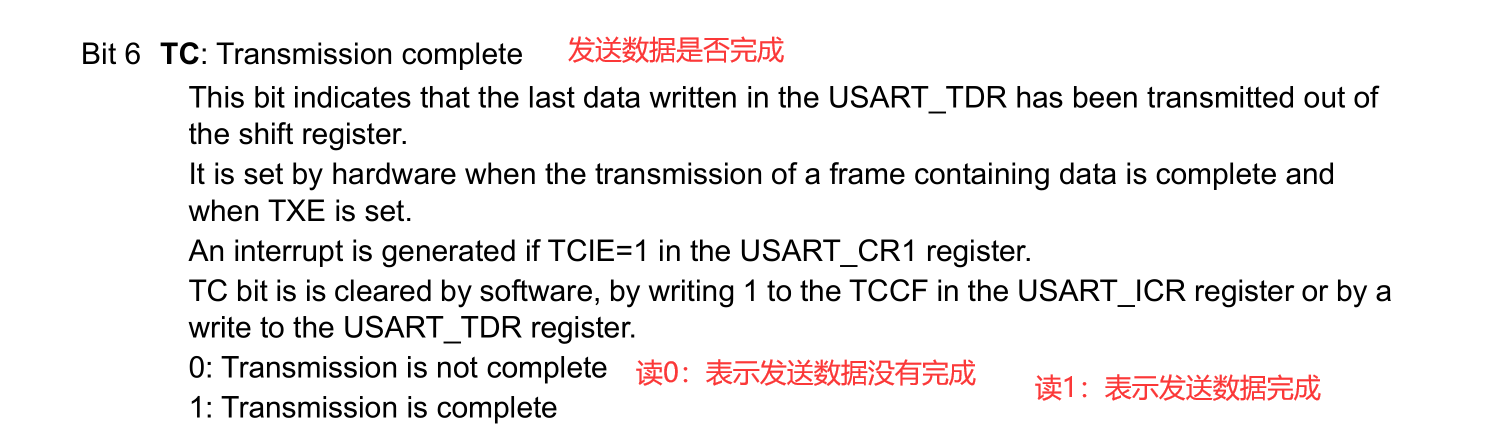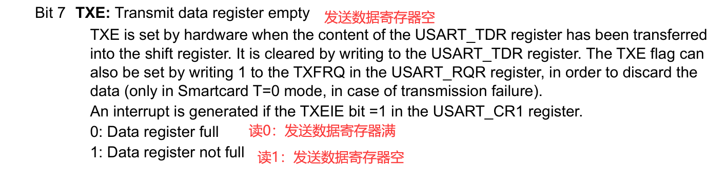 TXE:数据有没有写到发送数据寄存器中TC:一帧数据是否发送完成