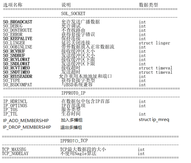 int sockfd:指定要设置/获取属性的套接字文件描述符int level:指定要控制的层次或者协议SOL_SOCKET:通用套接字选项;应用层IPPROTO_TCP:TCP选项IPPROTO_UDP:UDP选项IPPROTO_IP:IP选项
